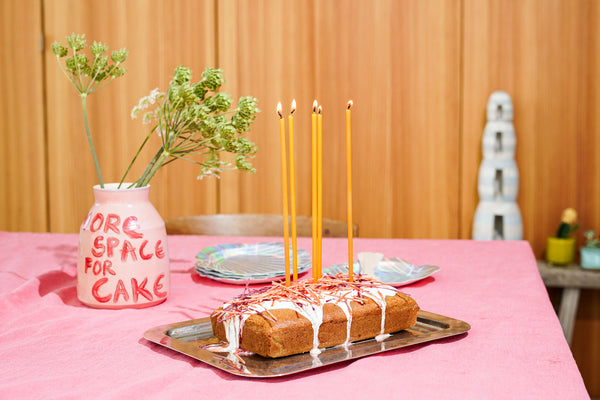Giet het beslag in de bakvorm, strijk glad en bak 25 minuten, tot een satéprikker er schoon uitkomt. Hoe langer je hem bakt, hoe droger hij wordt.