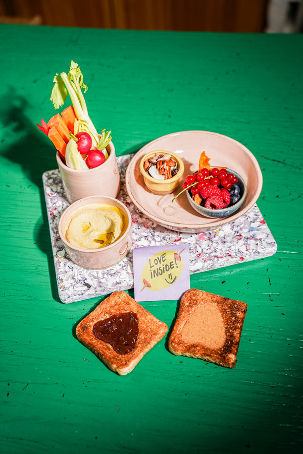 Die hongerige blik na een schooldag? We kennen ‘m allemaal. Direct de lade in op zoek achter snoep of chips! Herkenbaar , duhhhh ! Ik probeer me zo goed mogelijk te organiseren zodat ze om rond vier uur iets snel, gezond én aantrekkelijk klaar te zetten . Deze snack plate met volkorenboterham met peanutbutter & jam , verse rauwe groentjes en een romige humusdip is zo’n lifesaver. Alles is fingerfood, dus perfect om uit het vuistje te eten terwijl de boekentas leeggehaald wordt. Bonus: je kan veel dingen vooraf klaarmaken, dus geen stress elke dag opnieuw!