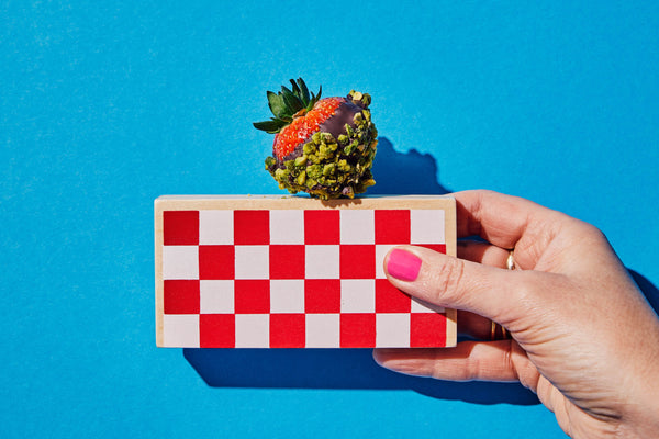 Aardbeien in chocolade en pistache