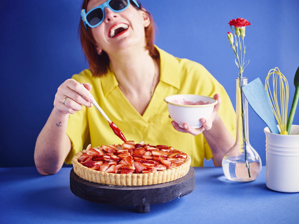 Strijk de aardbeien in met de gelei.