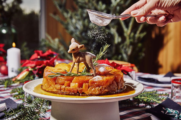 Laat wat afkoelen, zet een platte schaal op de taart en draai om. Klop er even bovenaan op zodat zeker alles loskomt. Je kan deze taart ook zeker maken met kant en klaar bladerdeeg als je minder werk wil. Strooi er wat bloemsuiker over en versier. Serveer lichtjes lauw.