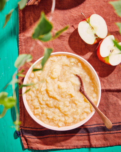 Gebruik een klopper voor een appelmoes met stukjes of een mixer voor een gladde appelmoes.