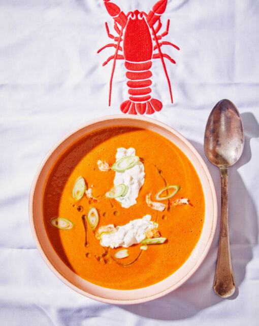 Je kunt, voordat je de karkassen toevoegt, ook blussen met een shotglaasje cognac of armagnac. De rivierkreeftjes kunnen vervangen worden door handgepelde garnalen. Probeer de bisque ook eens te maken met het afval van handgepelde Noordzee garnalen.