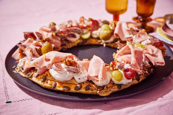 Bladerdeeg krans met verse opgeklopte kaas en zoet-zoute toppings