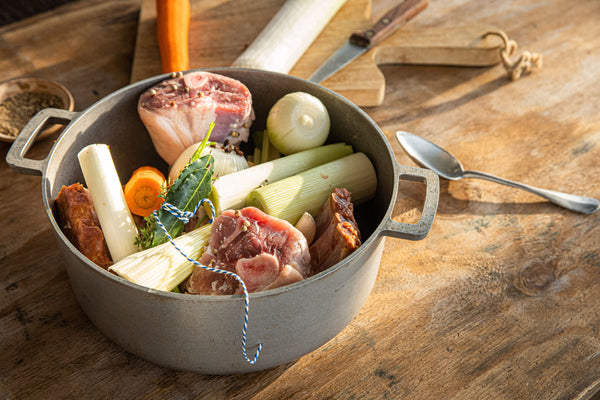 Bouillon van varkensribben en schenkel