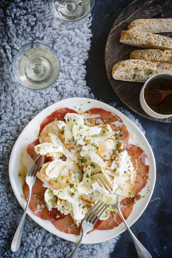 Verdeel de bresaola over de borden.