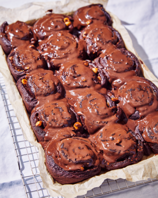 Smelt de chocolade in de room en giet over de rolls als ze nog warm zijn. Smeer open. Laat wat afkoelen en serveer best lauw. Of warm ze opnieuw op in de oven of microgolf.
