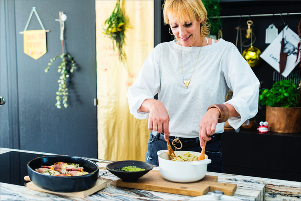 Ovenschotel met cordon bleu van zeeduivel, volkoren pasta en pesto