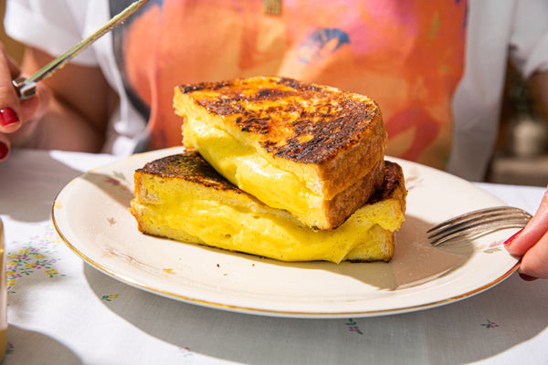 Klop de eieren los in een grote schaal met snuifje zout, klop de melk eronder en leg de gevulde toasts hierin, laat even zwellen en draai ze dan om. Zorg ervoor dat alle brood en ook korsten bedekt zijn met het eiermengsel, draai ze zorgvuldig om. Verwarm een koekenpan en smelt er een klont boter in. Leg de toasts erin en laat op middelmatig vuur gelijkmatig kleuren gedurende een 4-tal minuten. Draai om en bak opnieuw 4-tal minuten.