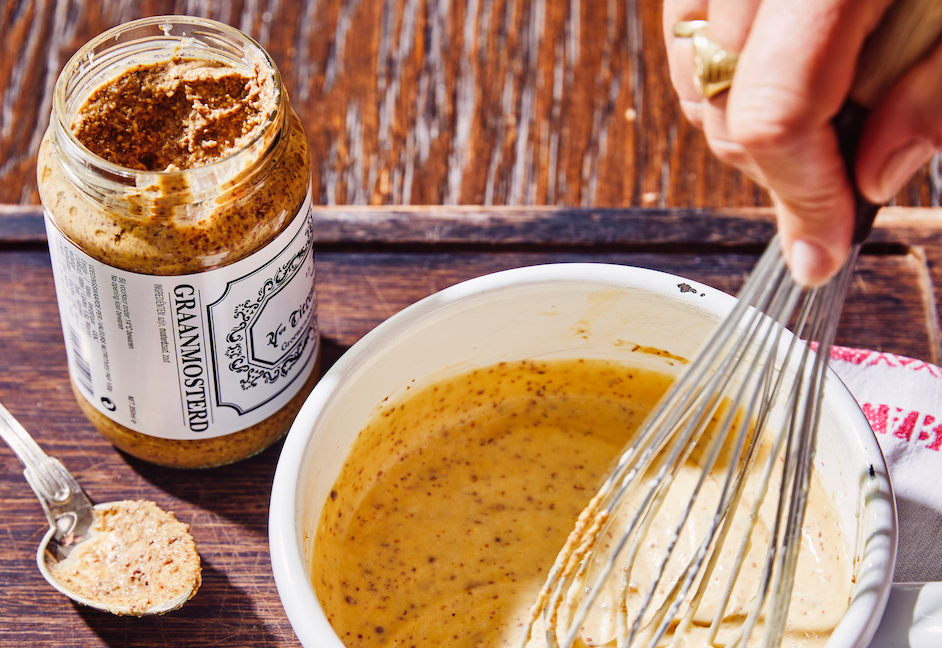 Dijonaisesaus, een klassieke botersaus waar mosterd is aan toegevoegd. Heerlijk bij vis of gegrilde groenten.