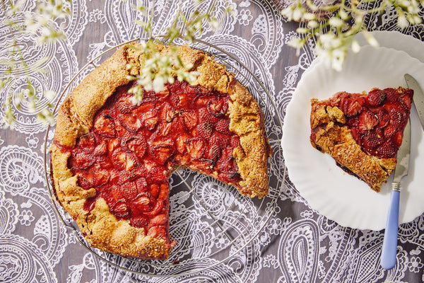 Smeer de jus van de aardbeien nog wat erover zodat hij mooi blinkt.