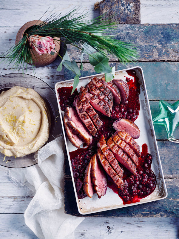 Maak insnijdingen in de vetrand van de eendenborstfilets en leg ze in een warme pan.