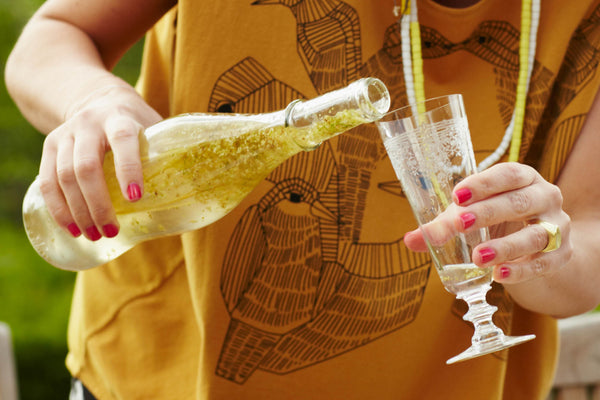 Wanneer je klaar bent om te serveren, leng je de siroop aan met koud bruisend water naar smaak, of gebruik het als basis voor andere drankjes.