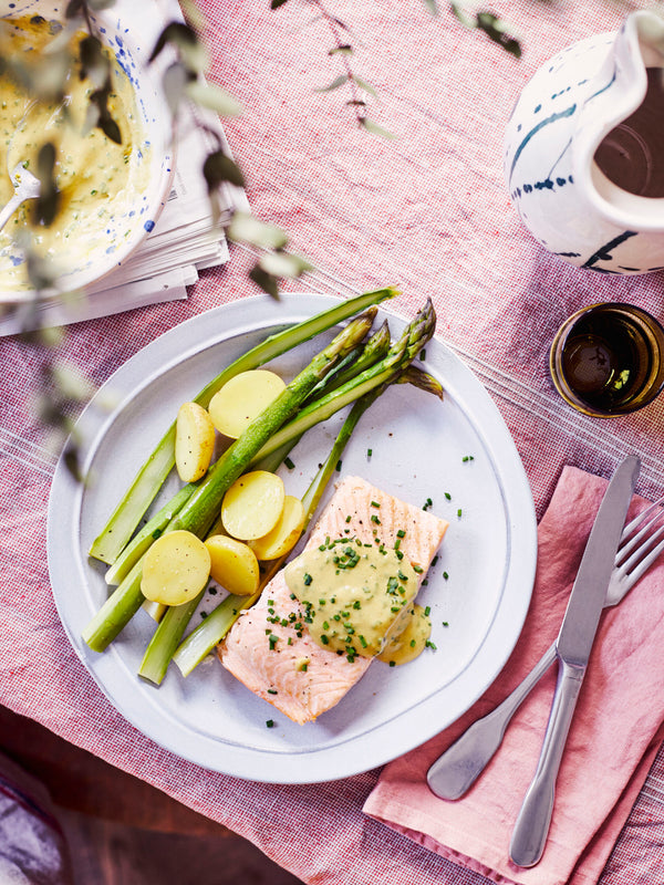 Het is belangrijk dat de 4 stukken zalm ongeveer dezelfde dikte hebben, zodat ze dezelfde gaartijd hebben. Dat geldt ook voor de krieltjes. Als die wat groot uitvallen, snij ze gerust in 4. Zo is alles mooi gaar in 15 minuten. Wil je een koolhydraatarm gerecht, vervang dan de aardappelen door een extra groente, bijvoorbeeld alle soorten bonen of broccoli.