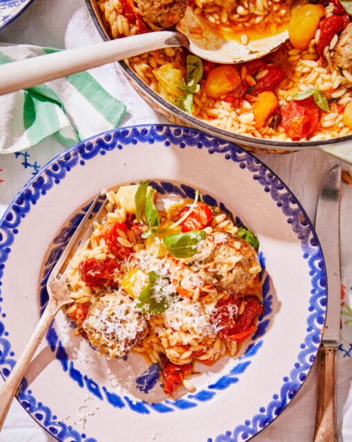 Griekse Ballekes met Orzo en Geconfijte Kerstomaatjes Pesto Style