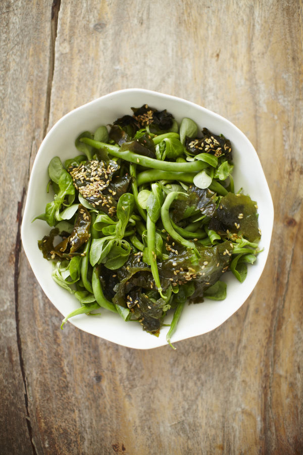 Groene salade met wakamé en boontjes