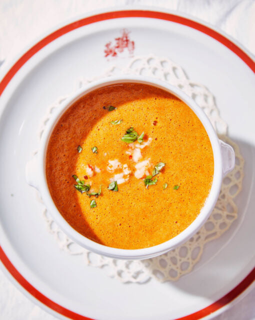 Garneer de bisque met garnaaltjes of langoustines voor een extra luxe touch. Je kunt de kreeftenbisque ook gebruiken als basis voor garnaalkroketten.