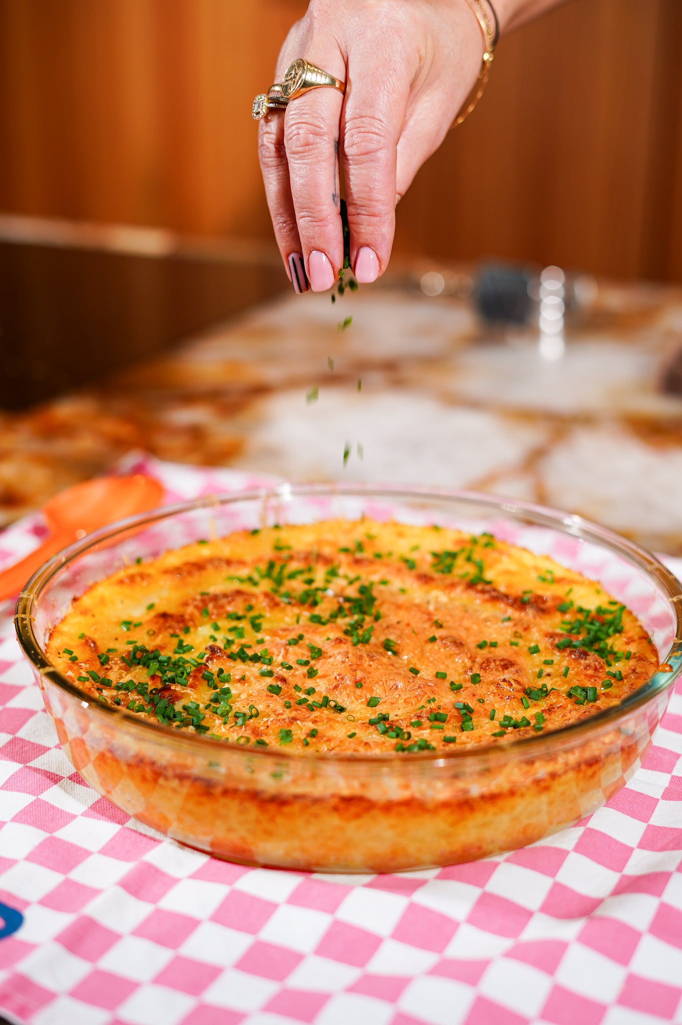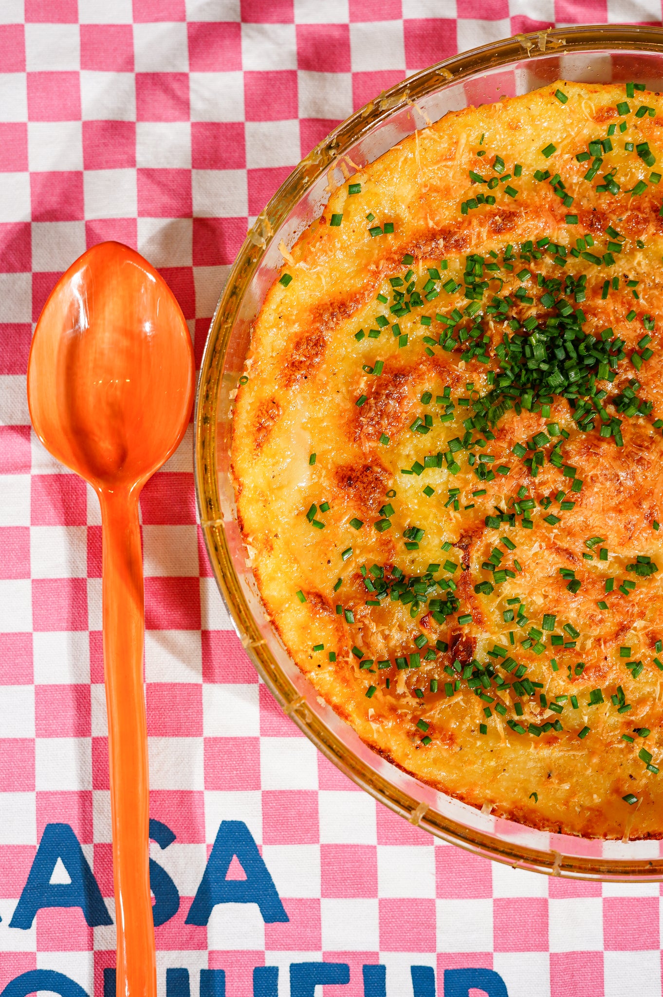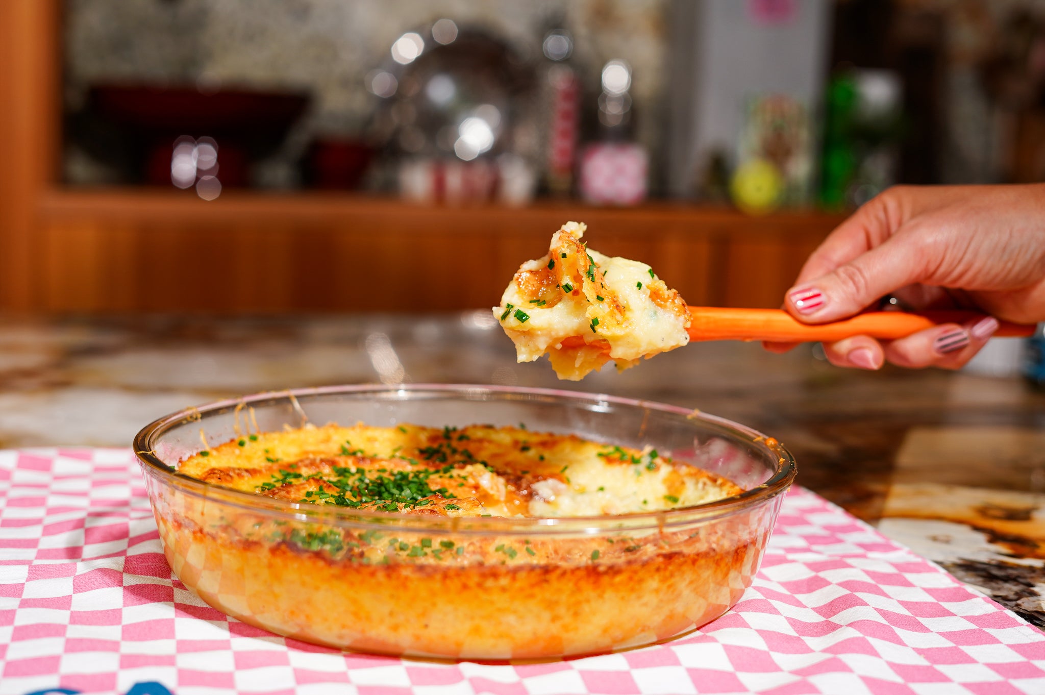 Deze smeuïge lookpuree uit de oven is het ultieme feestelijke bijgerecht. Door de look zacht te garen in boter krijgt de puree een rijke, volle smaak zonder scherp randje. Afgewerkt met een goudbruin kaaskorstje en verse bieslook, past deze puree perfect bij beef Wellington, stoofpotjes of wildgerechten. Je kunt hem prima op voorhand klaarmaken en enkel gratineren vlak voor het serveren.