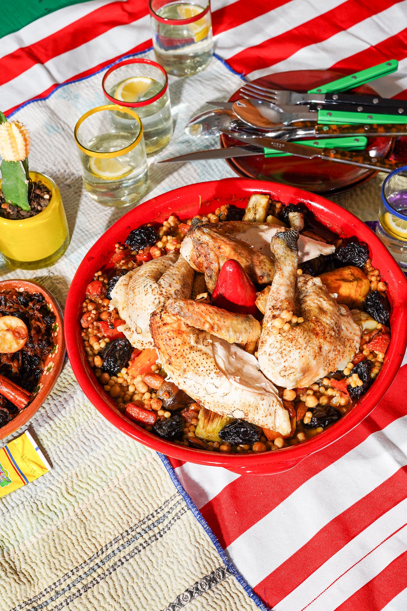 Dit gerecht is een ode aan de Marokkaanse keuken met rijke kruiden, sappige kip, geurige parelcouscous en zoetige gekaramelliseerde uien met rozijntjes. Ideaal om te serveren tijdens de ramadan. Alles ...