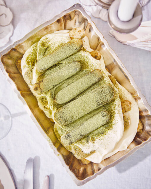 De tiramisu is na een nachtje opstijven nog lekkerder, omdat die dan goed doordrongen is met matcha. Haal het dessert zo’n 15 à 30 minuutjes voor serveren uit de koelkast.