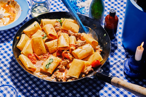Kook de pasta in gezouten water zoals vermeld op de verpakking. Giet af en houd wat kookvocht apart.