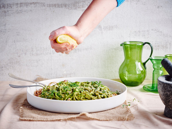 Werk af met extra gemalen Parmezaanse kaas, pistachenoten en citroensap.