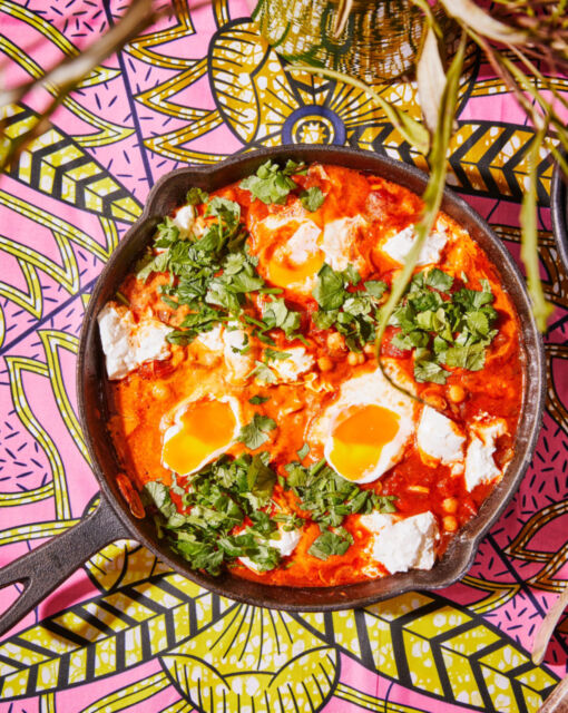 Serveer de shakshuka onmiddellijk, eventueel met wat toastjes.