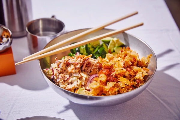 Geen kimchi in huis? Gebruik wat fijngesneden augurk of een beetje extra sushiazijn voor een vergelijkbare smaak. Extra pit? Voeg meer crispy chili-olie toe!