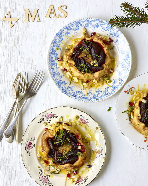 Wil je zelf aan de slag met deze feestelijke taartjes met rode biet en verse kaas? Ontdek het volledige recept hier!