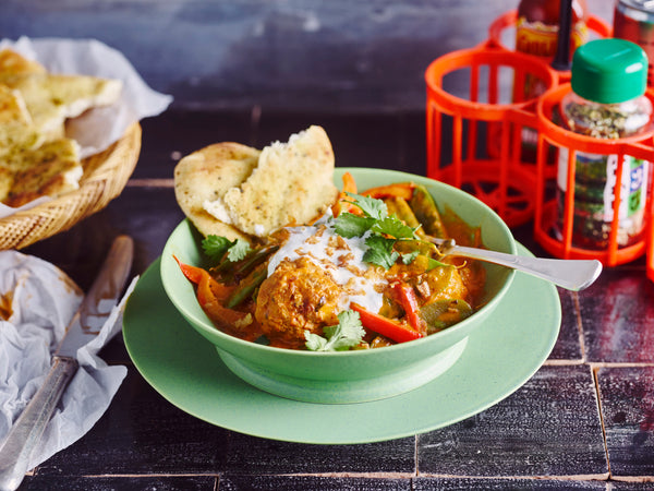 Tikka masala meatballs met naan