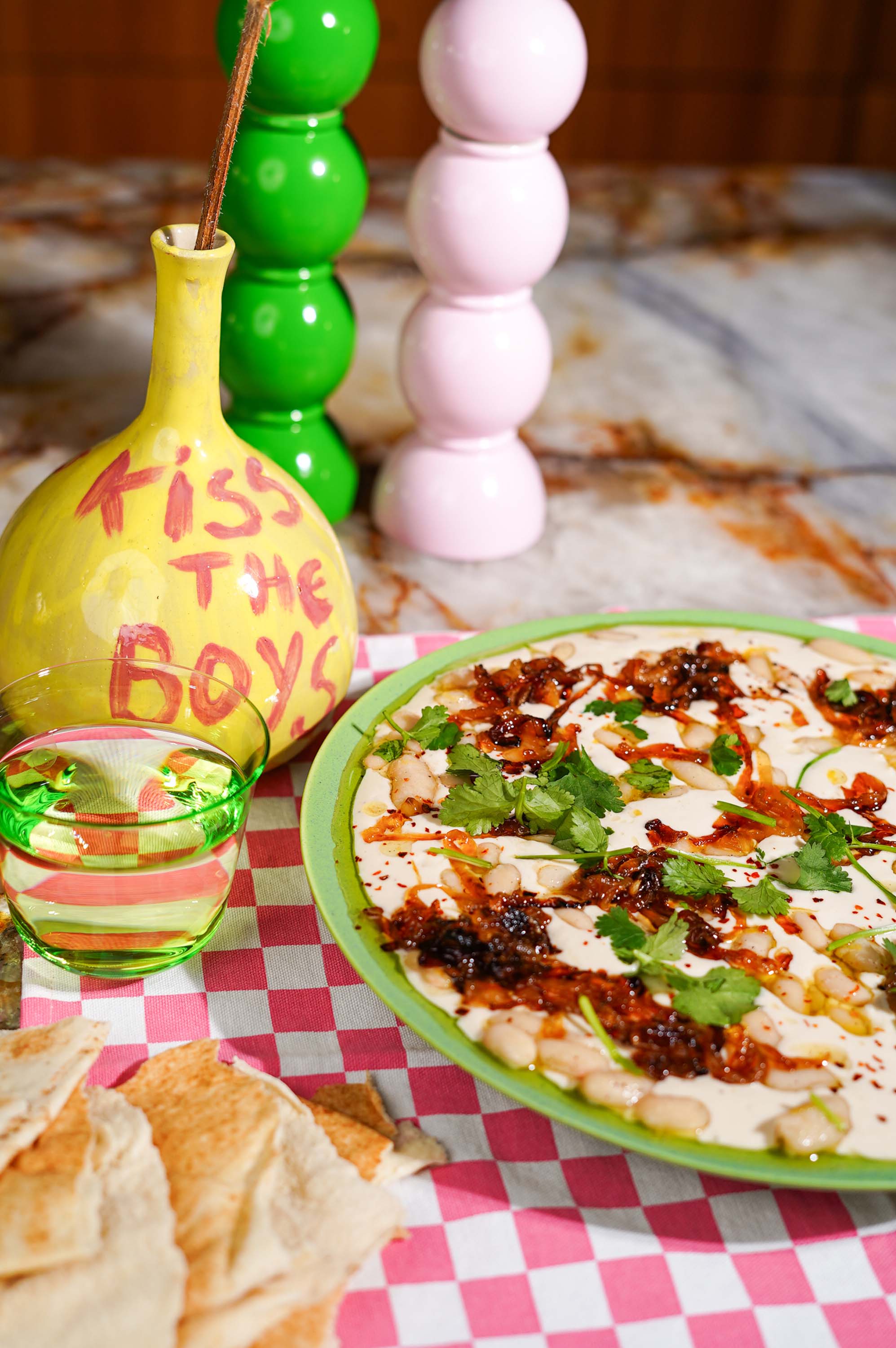 Scheur het nog licht warme Turkse brood in stukken en dip in de romige bonenspread.