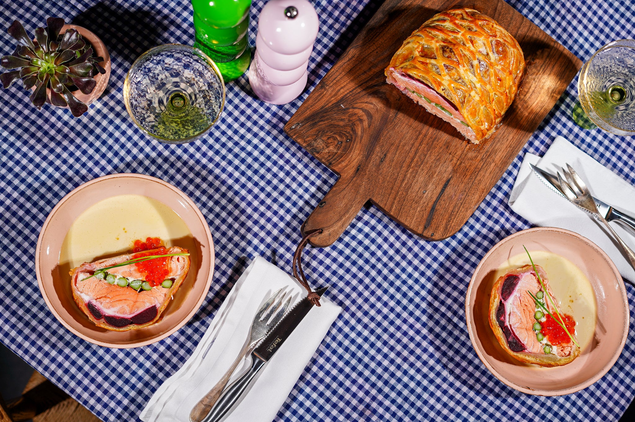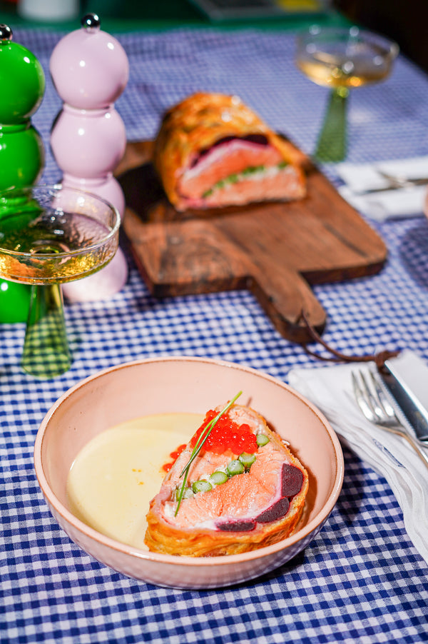 Zalm Wellington is een echte klassieker, maar deze versie tilt het gerecht naar een nieuw niveau. Met perfect gegaarde zalm, knapperige groene asperges, zoete rode bietjes en smeuïge roomkaas in een goudbruine bladerdeegkorst. Afgewerkt met een klassieke witte wijnsaus en een lepeltje zalmeitjes! Een beetje klassiek, maar wat een topgerecht. Dit gerecht is een feest op je bord. Ideaal voor een diner met vrienden of familie, en stiekem helemaal niet zo moeilijk als het lijkt.