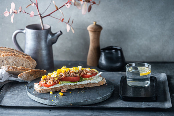 Een geweldige klassieker, tomaat garnaal, op een heerlijke zuurdesem boterham. Ik maak een lichtere versie met Griekse yoghurt.