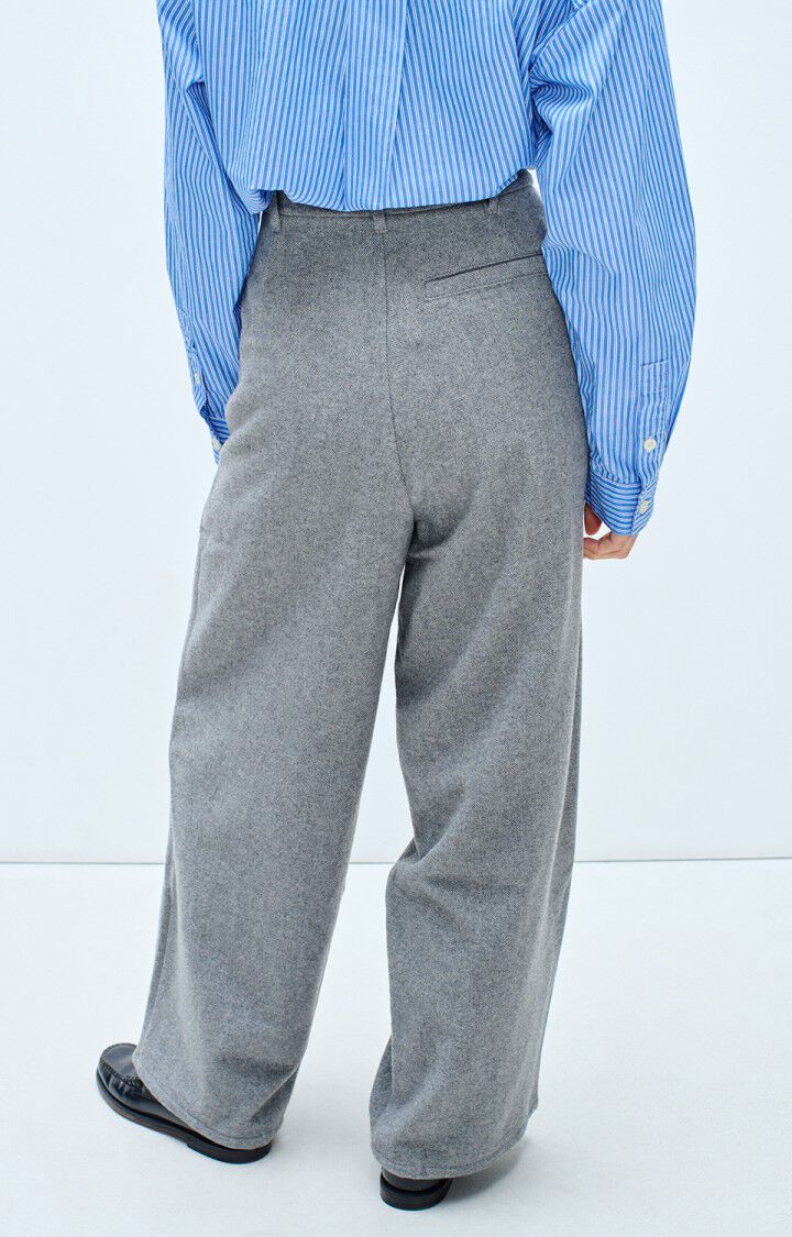 De Imibay-damesbroek heeft een wijde pasvorm met lage taille en combineert comfort met elegantie. Deze premium broek is gemaakt van Italiaans wol met visgraatmotief en biedt warmte en authenticiteit. De strakke en verfijnde broek heeft een tijdloze en verfijnde stijl en kan zowel met een overhemd als met een trui worden gecombineerd.