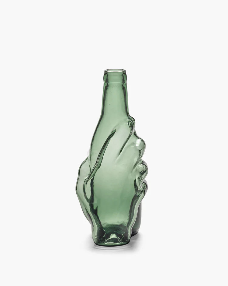 Over een conversation piece gesproken...Ik was direct verkocht toen ik die versmolten hand aan het oor zag. Hoe origineel is dat? Het is zo’n object waar iedereen aan tafel direct over begint te babbelen. Het is surrealistisch, een beetje gedurfd, maar tegelijk blijft het super elegant. Of je nu gaat voor de transparante versie of dat prachtige smaragdgroen, het geeft je gedekte tafel direct die artistieke vibe. Ik hou ervan als dingen een beetje anders dan anders zijn, maar wel met die klasse. Of er nu water of een lekker wijntje in zit, dit is gewoon puur genieten om naar te kijken!