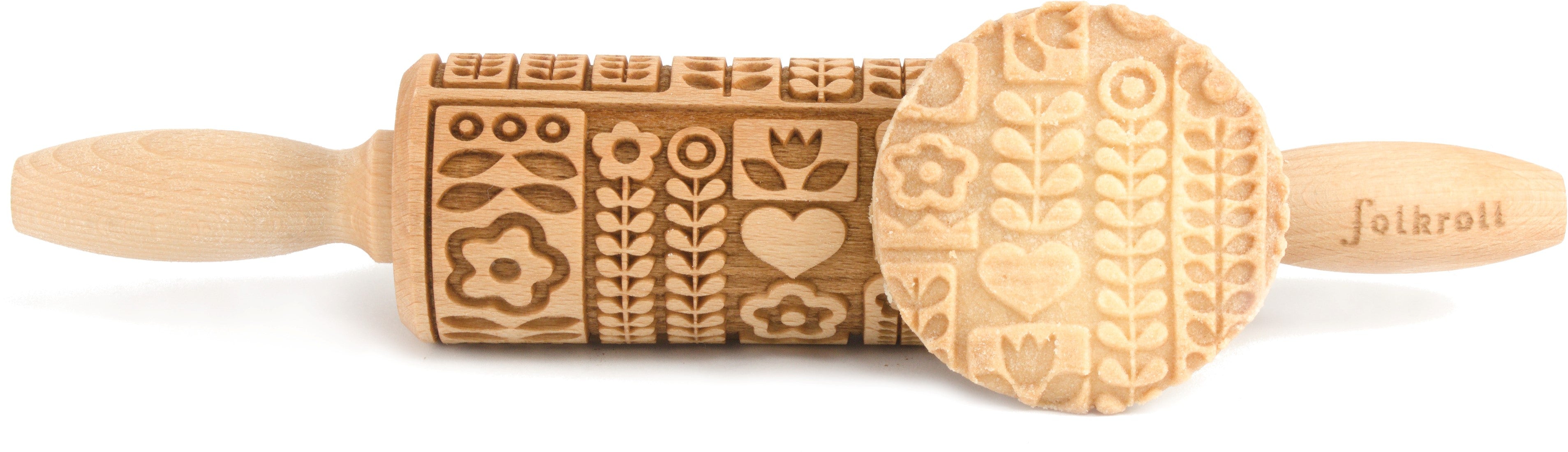 Zin om je koekjes nét dat tikkeltje extra te geven? Met deze originele Folkroll deegrol in verschillende patronen tover je elk deeg om tot een waar kunstwerk. Gewoon even met matige druk over je uitgerold deeg rollen, en het patroon komt prachtig tevoorschijn – tijdens het bakken wordt het effect nóg mooier.