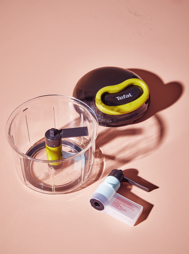 De Tefal 5 Second Chopper 0,9L hakt groenten, kruiden, noten en sauzen in enkele seconden fijn — zonder elektriciteit. Dankzij het trekmechanisme en de scherpe roestvrijstalen messen krijg je snel een gelijkmatig resultaat, ideaal voor snelle mealprep en dagelijkse keukenpraktijk.