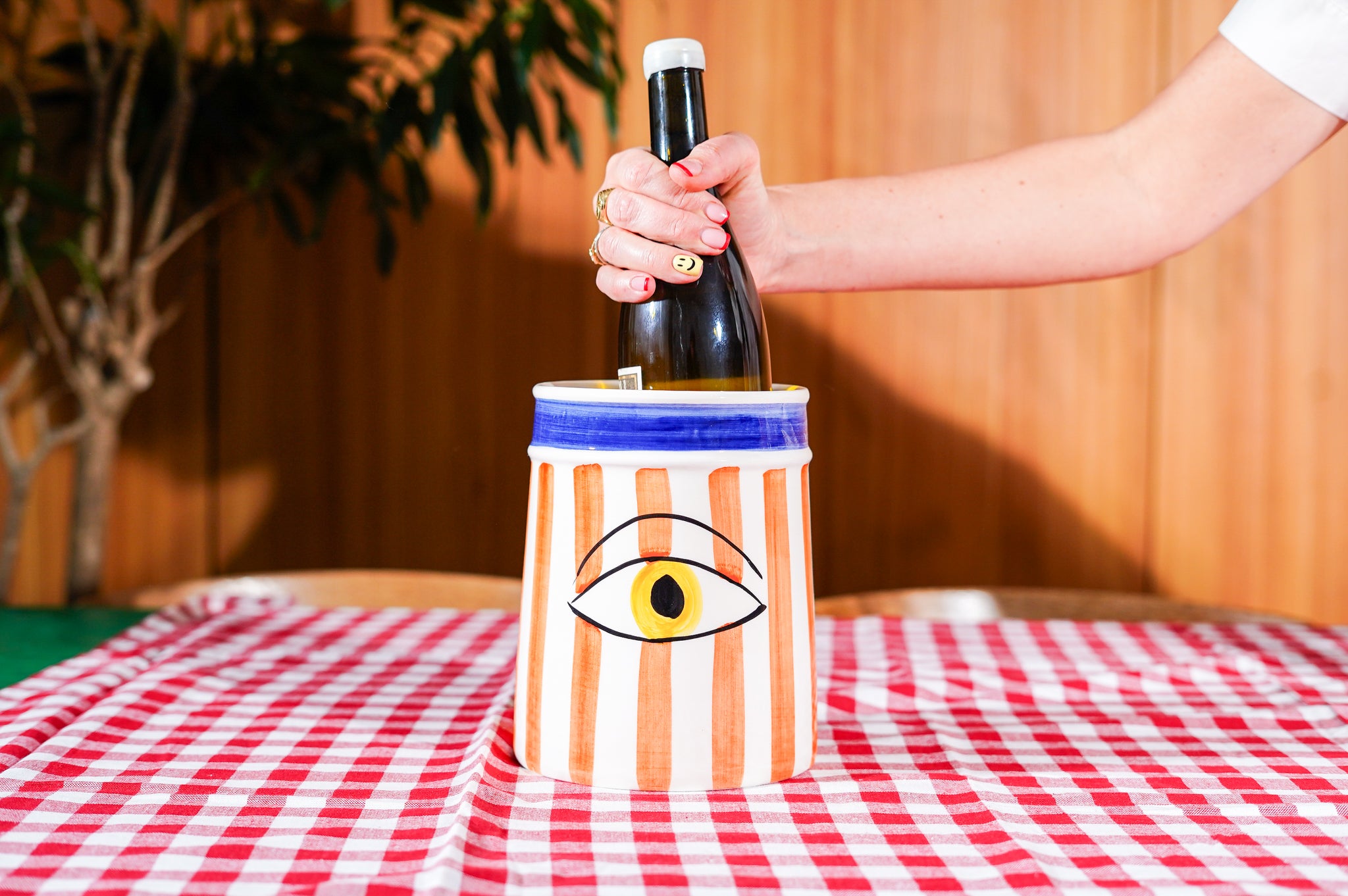 Koude wijn of champagne serveren mag er ook mooi uitzien. Deze handgemaakte wine chiller uit Portugal is zo'n stuk dat meteen de aandacht trekt aan tafel. Kleurrijk, speels en volledig met de hand gemaakt, zonder machines. Elk stuk is dus net even anders, en dat is precies wat hem zo leuk maakt.