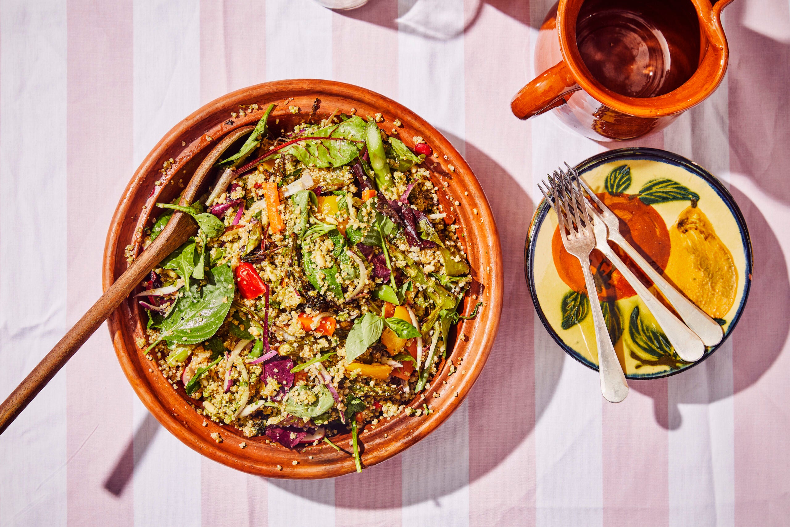 Quinoa salade met gegrilde groenten en pesto