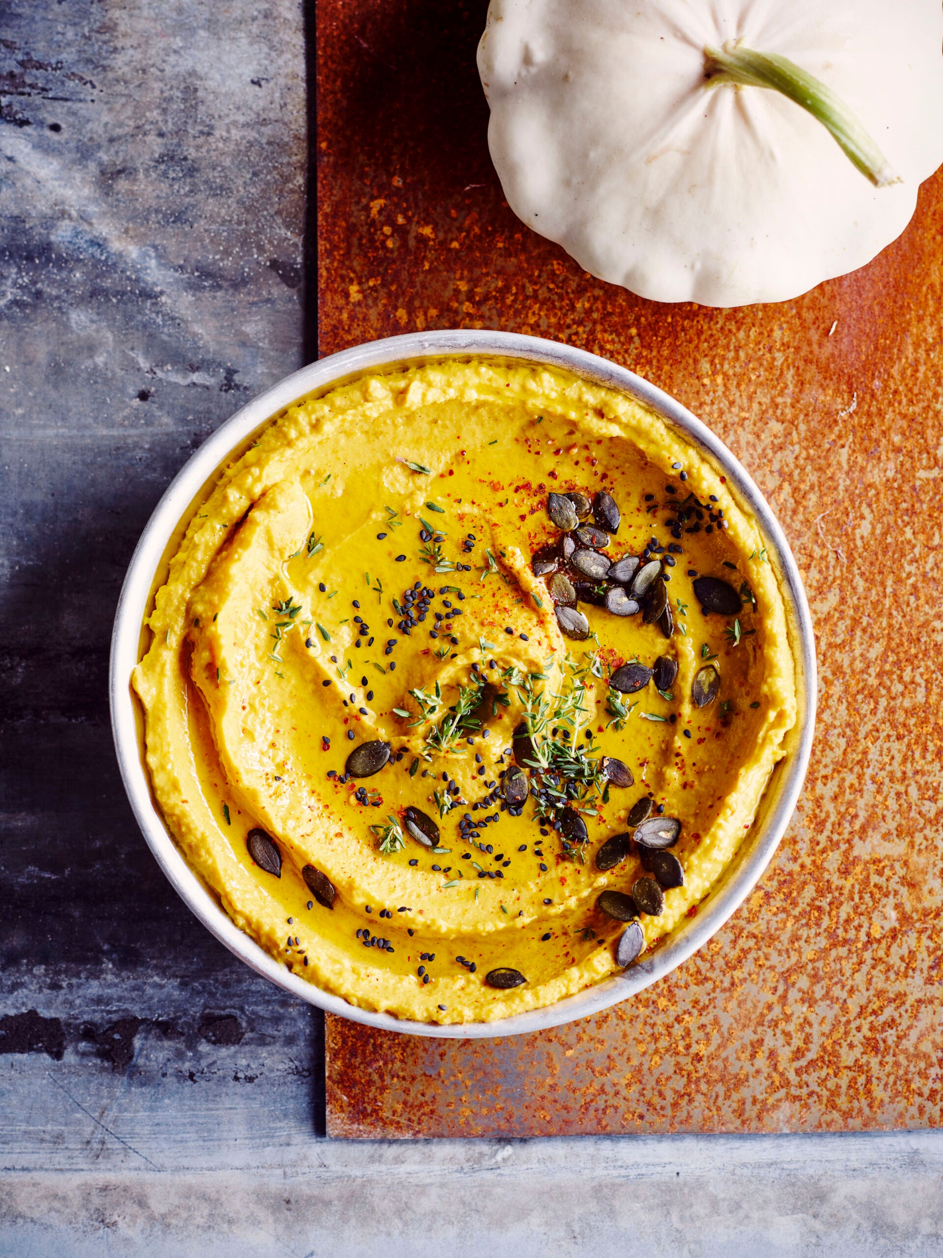 Lekkere spicy hummus van pompoen, als hapje of dip! Ontdek het recept hier.